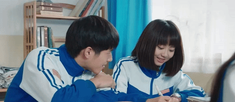 투닥거리는게 한참이지만 같이 기초군사훈련 받으면서 사이 좋아지고, 공부못하는 겅겅이 뒷자리에 앉자 공부잘하는 위화이가 짝꿍이 되어주겠다고 약속 지키는 장면입니다! 이때 솔직히 손과 발이 사라졌습니다.(하지만 웃고 있는 나를 발견)
